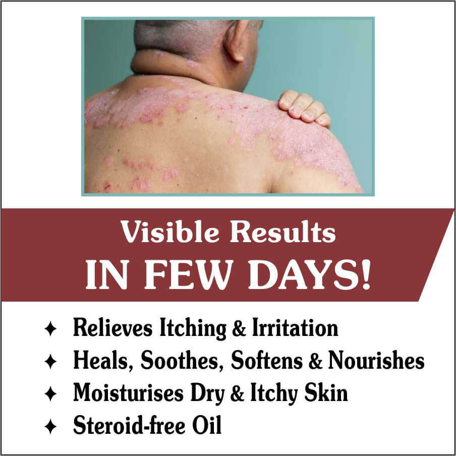 Psoriasis causes dry, itchy, and scaly skin patches due to inflammation. Our Psoriasis Oil soothes irritation, reduces redness, and softens thick patches. With regular use, it supports healthy skin repair and restores natural moisture for visible relief.