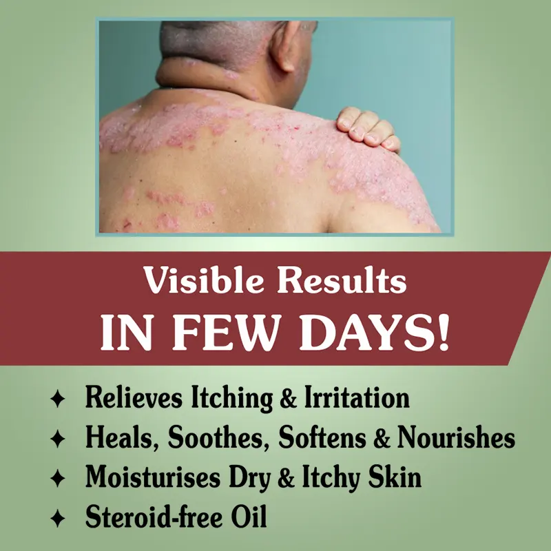 Psoriasis causes dry, itchy, and scaly skin patches due to inflammation. Our Psoriasis Oil soothes irritation, reduces redness, and softens thick patches. With regular use, it supports healthy skin repair and restores natural moisture for visible relief.